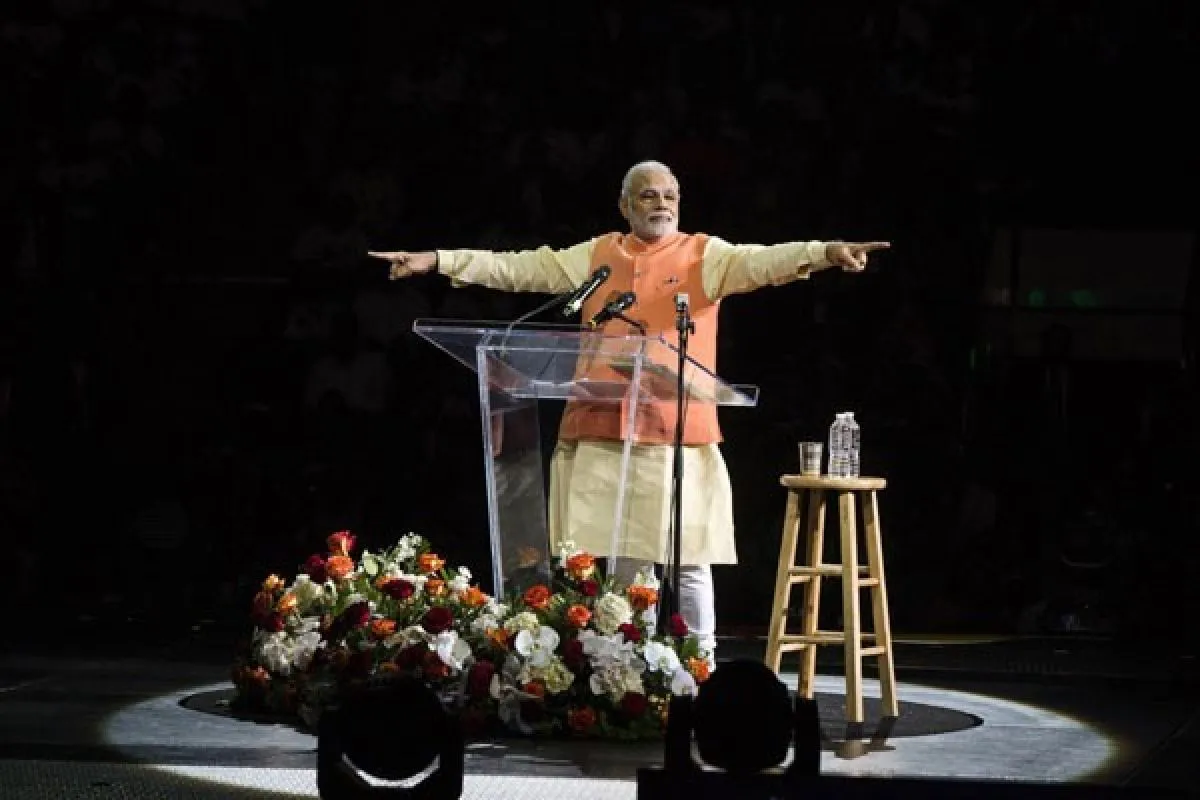 Perdana Menteri India Narendra Modi berpidato di Madison Square Garden, New York, dalam kunjungannya ke Amerika Serikat, Minggu (28/9). (Foto: REUTERS/Lucas Jackson)