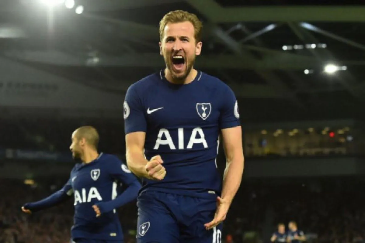 Penyerang Tottenham Hotspur, Harry Kane, meluapkan kegembiraannya usai mencetak gol ke gawang Brighton & Hove Albion dalam laga lanjutan Liga Inggris di Stadion Amex, Brighton, Inggris, Rabu (18/4/2018) dini hari WIB. (twitter.com/premierleague)