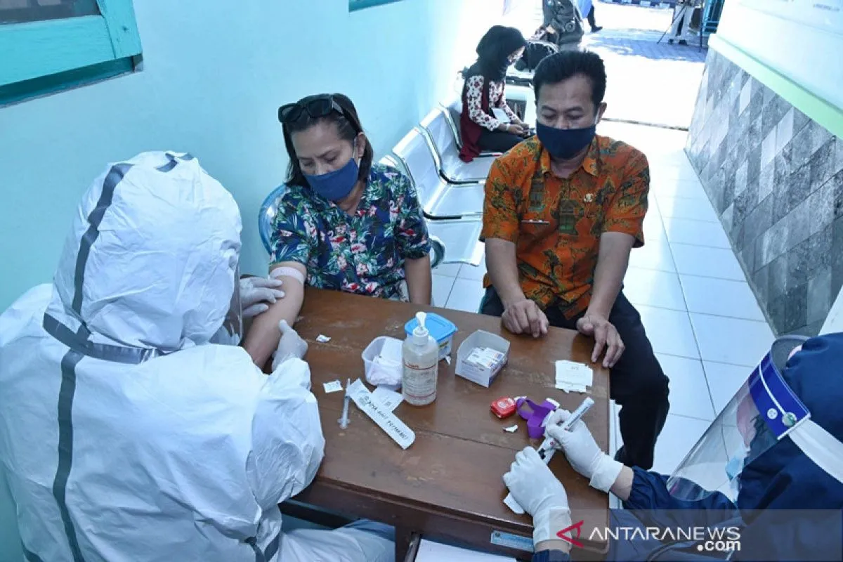Petugas medis mengambil sampel darah warga dalam pemeriksaan untuk mendeteksi penularan COVID-19 di Puskesmas Boyolali Kota, Rabu (8/7/2020). (ANTARA/Bambang Dwi Marwoto)