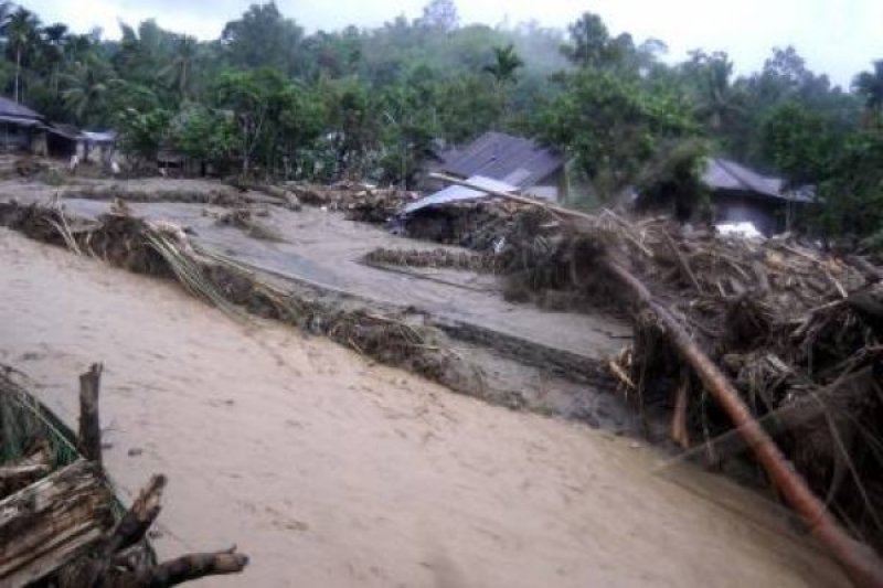 Banjir bandang juga merendam ratusan hektare sawah yang baru ditanami padi maupun siap tanam di empat kabupaten itu.