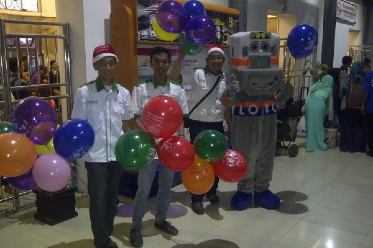 Kegiatan bagi-bagi cokelat dan balon bertema "Berbagi Cinta Kasih KA untuk Kedamaian Bangsa Indonesia" saat Angkutan Natal dan Tahun Baru itu, hasil kerja sama KRDE dengan PT Kereta Api Daerah Operasi IV Semarang.