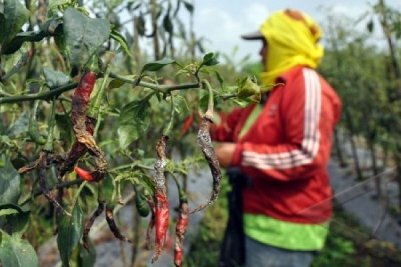 Petani Desa Tlogomulyo, Mudiyono di Temanggung, Senin, mengatakan tingginya intensitas hujan akhir-akhir ini membuat tanaman cabai mudah terserang hama patek dan busuk batang.