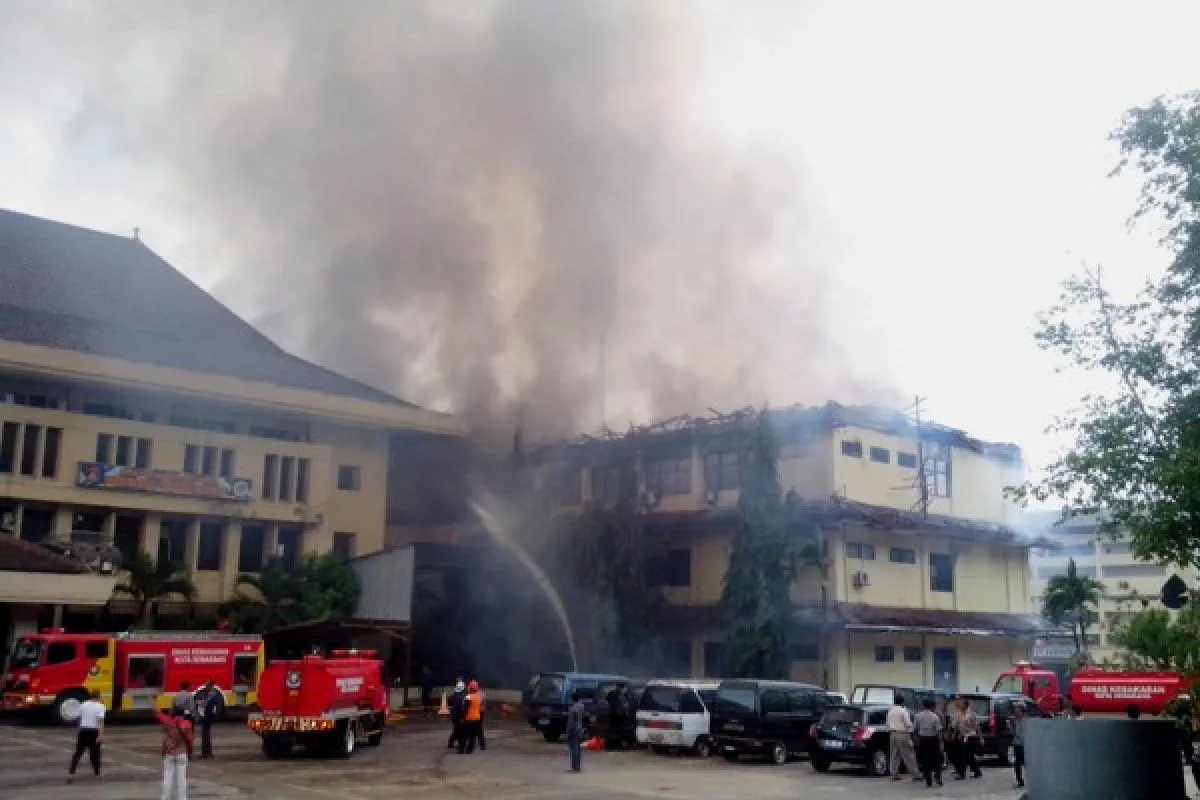 Salah satu gedung bertingkat tiga di bagian tengah kompleks tersebut terbakar sekitar pukul 11.00 WIB