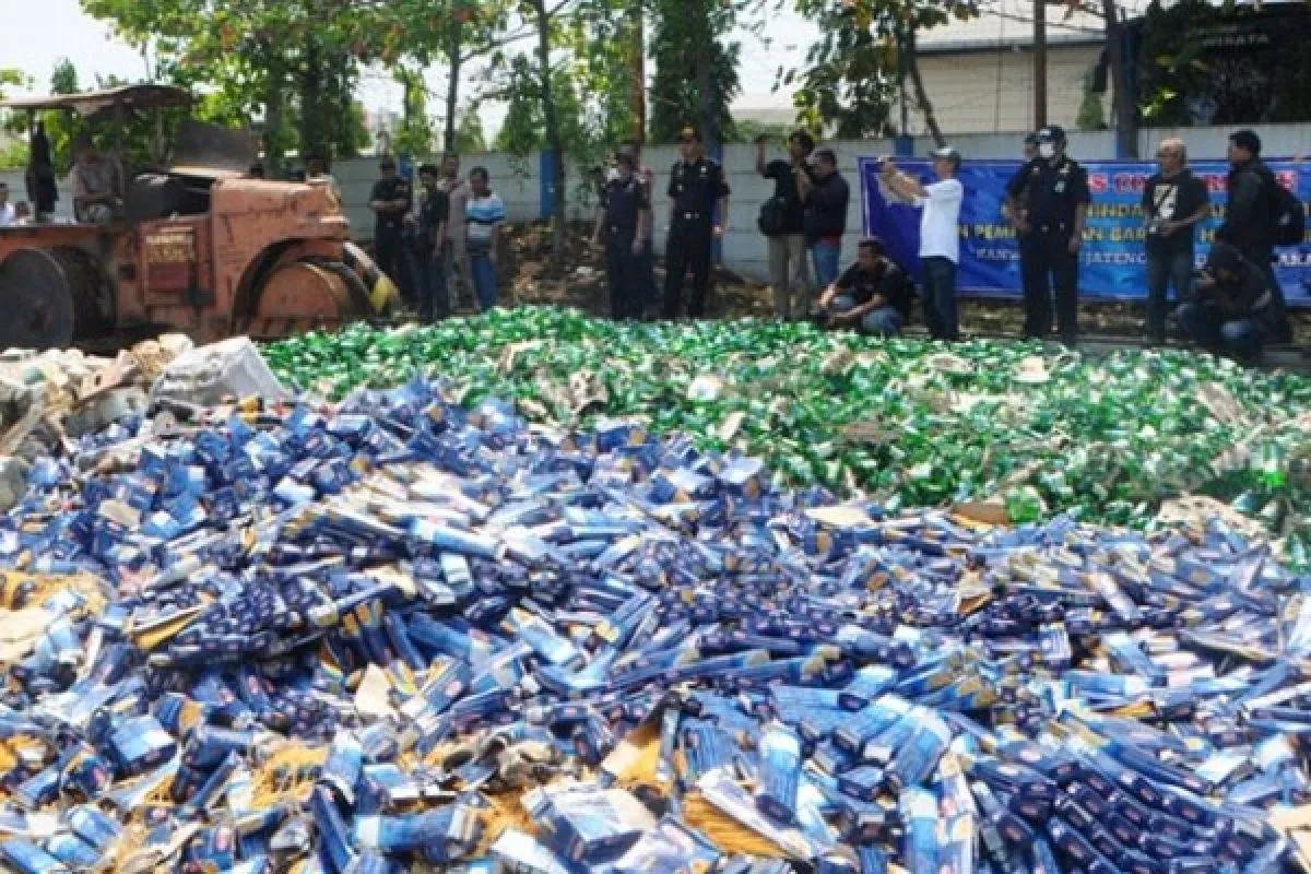 Kepala Direktorat Jenderal Bea dan Cukai Wilayah Jawa Tengah dan Yogyakarta Untung Basuki mengatakan barang bukti yang dimusnahkan tersebut antara lain ribuan botol minuman keras ilegal serta rokok tanpa cukai resmi.