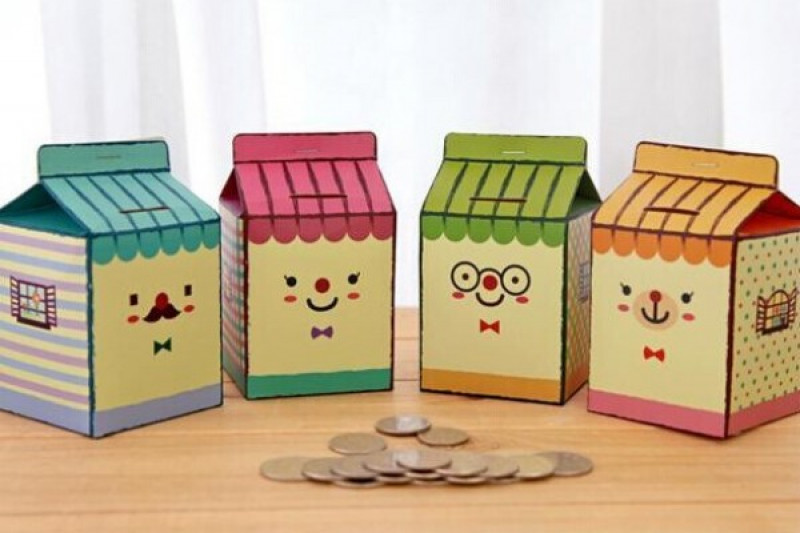 Yuni membuat celengan hasil usaha ekonomi kreatif berbentuk silinder dan rumah-rumahan dengan diberi hiasan gambar-gambar antara lain hello kitty dan donal bebek yang disenangi anak-anak.
