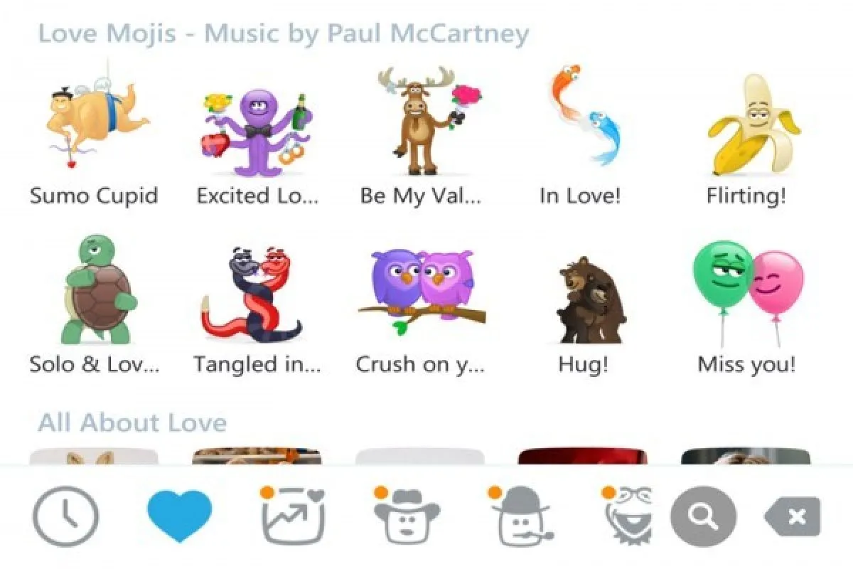 Ada pula satu set emoji baru yang menampilkan komposisi khusus dari personel The Beatles, Sir Paul McCartney, yang akan membantu pengguna Skype mengungkapkan berbagai bentuk cinta melalui musik.