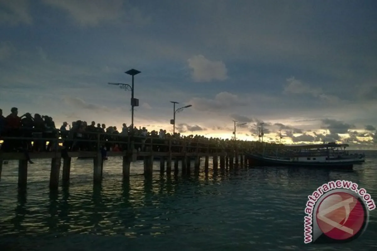 Di pantai Tanjung Kelayang, Belitung, gerhana matahari total mencapai puncak pada pukul 07.20 WIB dan suasana pantai gelap seperti senja menjelang malam.