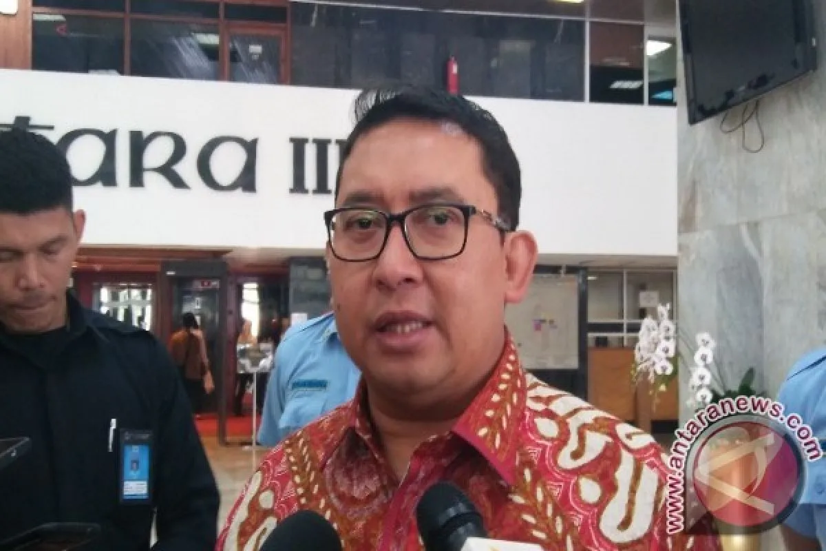 Fadli Zon usai usai memberikan sambutan pembukaan pameran seni rupa yang diadakan Sekretariat Jenderal DPR RI dalam rangka HUT DPR RI ke 71 di Ruang Pustakaloka, Gedung DPR RI, Senayan, Jakarta, Senin, mengapresiasi karya seni rupa sebagai bagian yang tak terpisahkan dari kekayaan bangsa.