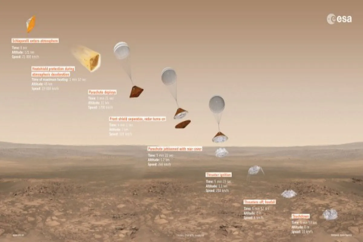 Pesawat tersebut akan memisahkan diri dari kapal "Trace Gas Orbiter" (TGO) pada 14.42 GMT, kemudian melakukan proses pendaratan di permukaan selama tiga hari.