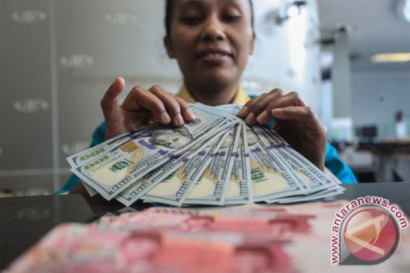 Petugas menunjukkan uang dolar US dan uang rupiah di tempat penukaran uang di kantor PT Valuta Inti Prima, Jakarta. Nilai tukar rupiah yang ditransaksikan antar bank di Jakarta pada Senin (23/1/2017) pagi bergerak menguat sebesar 52 poin menjadi Rp13