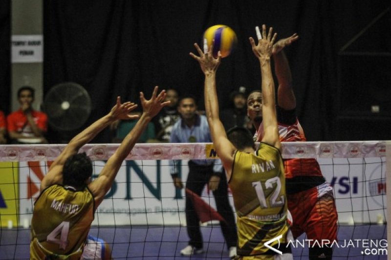 Solo, ANTARA JATENG - Tim putra bola voli Palembang Bank SumselBabel mengalahkan Surabaya Bhayangkara Samator dengan skor 3-0 pada pertandingan babak empat besar Proliga 2017 di Gedung Olahraga Sritex Arena Solo, Minggu malam.