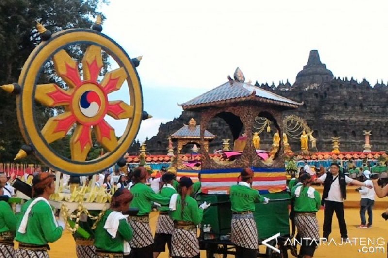 Magelang, C Java, ANTARA JATENG - Thousands of Buddhists and hundreds of monks took part in the procession for the commemoration of Waisak Day here, Wednesday, walking 3.5 kilometers from Mendut to Borobudur Temple in Magelang, Central Java.