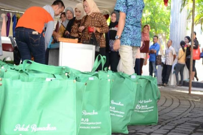 Semarang, ANTARA JATENG - BPJS Ketenagakerjaan Cabang Semarang Pemuda mempersiapkan 1.600 paket sembako pada Bazar Ramadan yang diselenggarakan di halaman balai kota Jalan Pemuda 148 Semarang, Kamis.