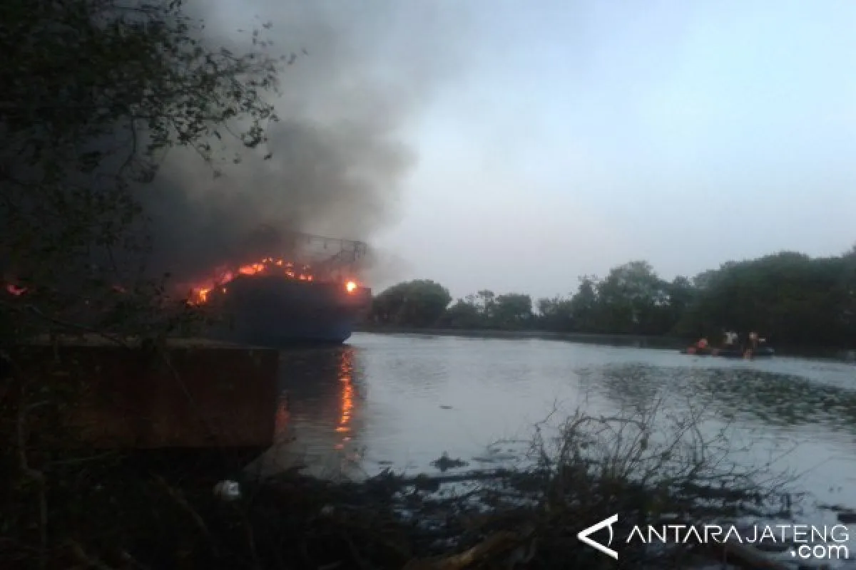 Semarang, ANTARA JATENG - As many as 16 fishing boats that were parked in Juwana river channel in Pati District, Central Java, were burned down.