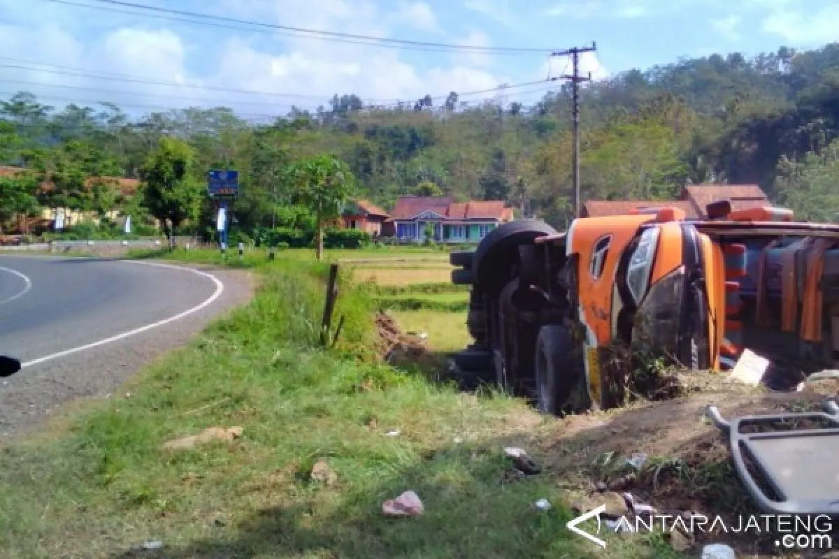 Banyumas, ANTARA JATENG - Sebuah bus pengangkut rombongan Persatuan Perangkat Desa Indonesia (PPDI) Kabupaten Purworejo mengalami kecelakaan tunggal di Jalan Raya Lumbir-Wangon, Banyumas, Jawa Tengah.