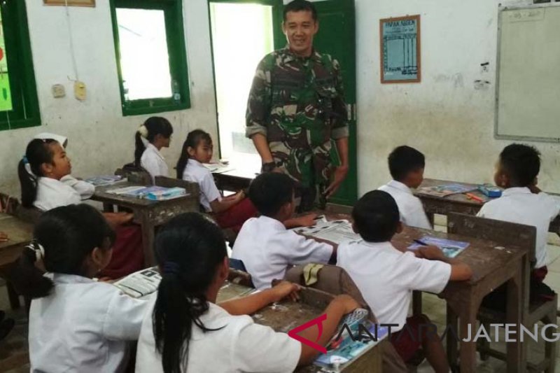 Pati (Antaranews Jateng) – Personel Kodim 0718/Pati, Jawa Tengah yang tergabung dalam satuan tugas (Satgas) TMMD Reguler ke-101 tidak hanya melakukan pembangunan fisik, tetapi juga nonfisik salah satunya dengan ikut serta mengajar di sekolah dasar (SD) 02 Desa Godo, Kecamatan Winong, Kabupaten Pati.