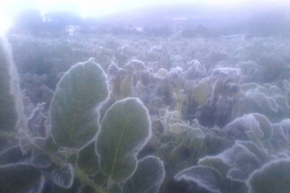 Ia mengatakan embun es merusak tanaman kentang, sedangkan tanaman lain, seperti kobis, wortel, dan daun bawang lebih tahan.