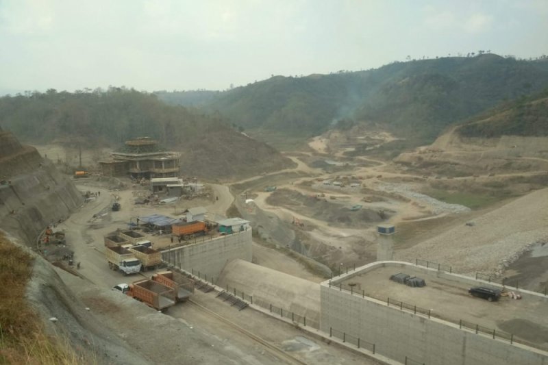 Aktivitas pekerjaan saat ini meliputi penyelesaian pembangunan bangunan pelimpah (spillway), gerbang gapura, saluran pengelak, dinding penahan (pelindung tebing), gardu pandang, dan tata kawasan.