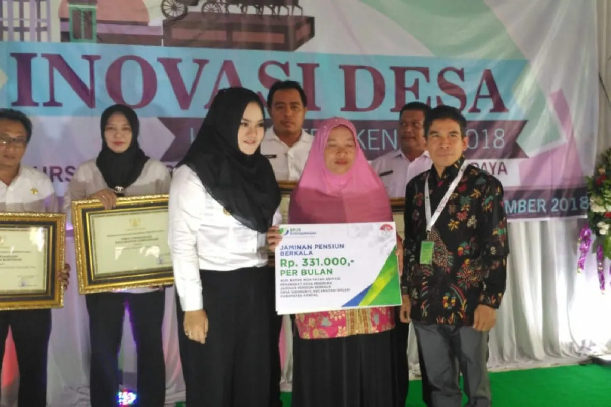 Kendal - Program Inovasi Desa Kendal memberikan nilai positif karena menjadikan perangkat desa menerima uang pensiun secara bulanan dan pemberian santunan klaim pertama diserahkan oleh BPJS Ketenagakerjaan setempat.