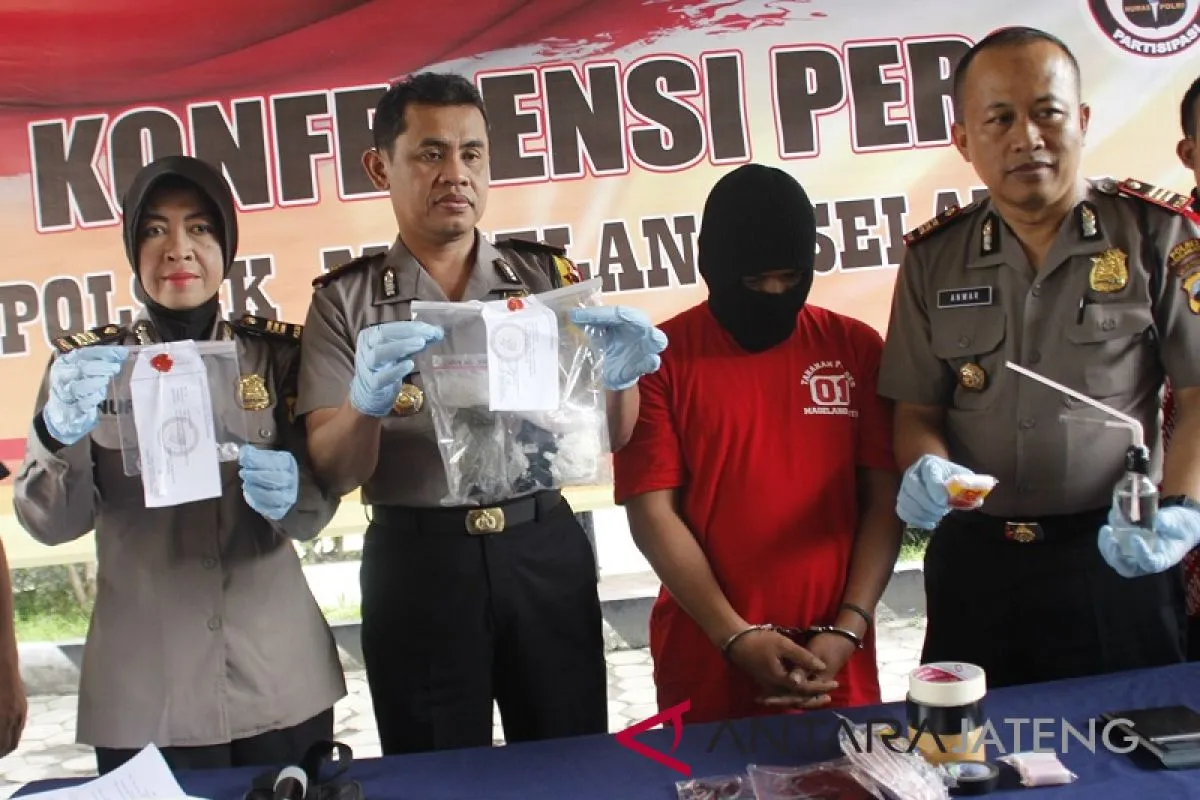 Tersangka yang berusia 39 tahun tersebut ditangkap petugas unit narkoba Polsek Magelang Selatan di sebuah tempat kos di Kampung Salakan, Kelurahan Tidar Selatan, Kecamatan Magelang Selatan, Kota Magelang.