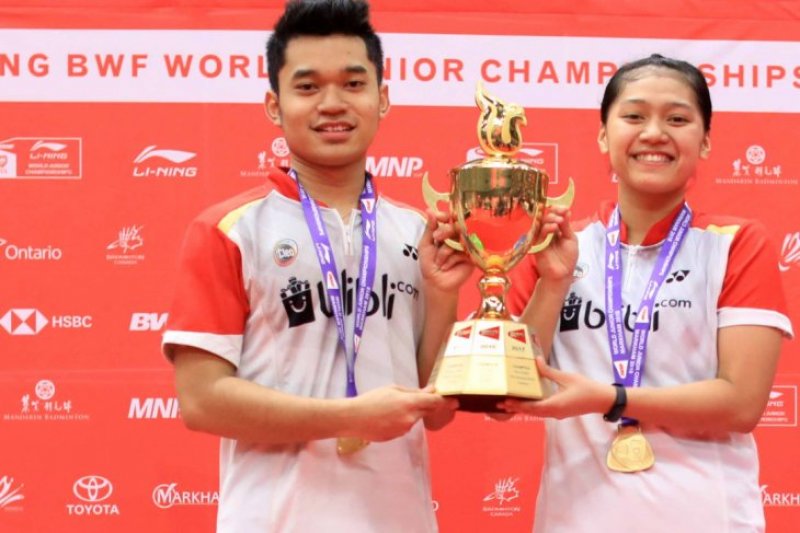 Jakarta (Antaranews Jateng) - Pasangan ganda campuran Indonesia Leo Rolly Carnando/Indah Cahya Sari Jamil sukses menyabet medali emas BWF World Junior Championships 2018 yang berlangsung di Ontario, Kanada.