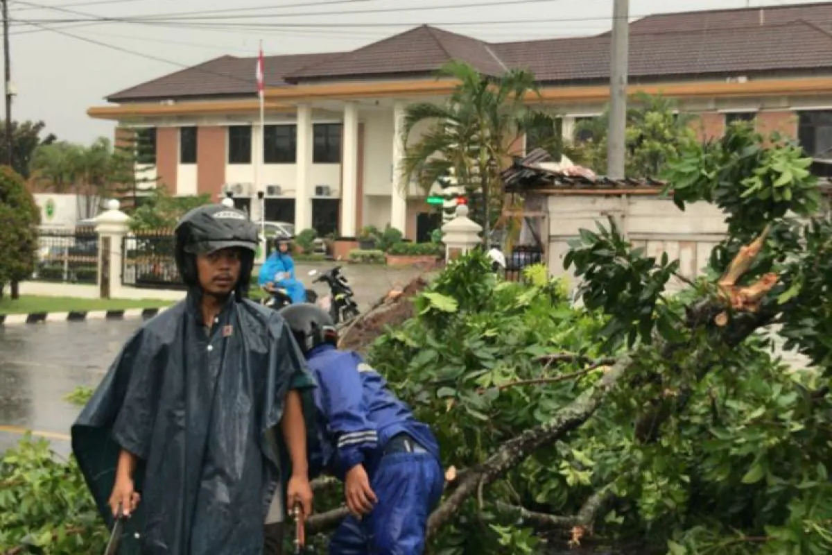Banyumas (ANTARA) - Puluhan pohon tumbang saat terjadi hujan lebat yang disertai dengan angin kencang di Kecamatan Banyumas, Kabupaten Banyumas, Jawa Tengah, Jumat siang.