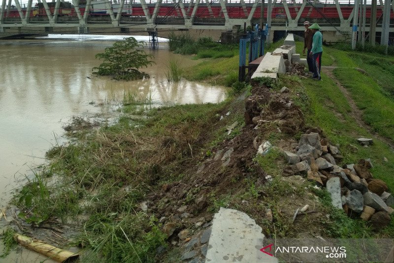 Pemerintah desa, katanya, akan melakukan penanganan darurat dengan melakukan penguatan menggunakan sak plastik yang diisi dengan tanah untuk mencegah air sungai bocor karena bisa membanjiri pemukiman warga sekitar.