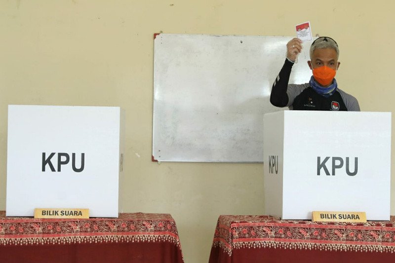 Gubernur Jawa Tengah Ganjar Pranowo menggunakan hak pilih pada Pilwalkot Semarang 2020. (ANTARA/HO-Humas Pemprov Jateng)