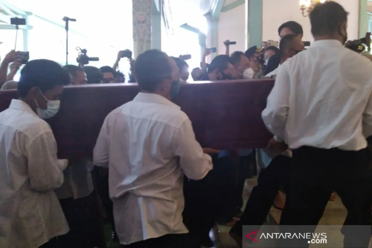 Sementara itu, jenazah sendiri tiba dari Jakarta ke Pura Mangkunegaran pada pukul 16.15 WIB. Beberapa pejabat terlihat melakukan penyambutan kepada jenazah, di antaranya Kapolda Jateng Irjen Pol Ahmad Luthfi dan Kapolresta Surakarta Kombes Pol Ade Safri Simanjuntak.