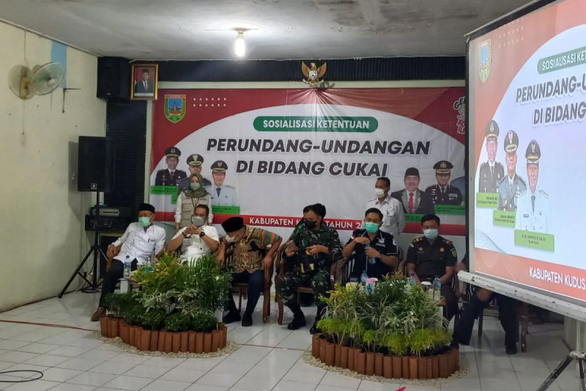 Sosialisasi perundang-undangan di bidang cukai digelar di aula Balai Desa Samirejo, Kecamatan Dawe, Kabupaten Kudus dengan dihadiri Bupati Kudus Hartopo serta sejumlah pemateri dari Kantor Pengawasan dan Pelayanan Bea Cukai (KPPBC) Tipe Madya Kudus, Kodim, Polres dan Kejari Kudus.