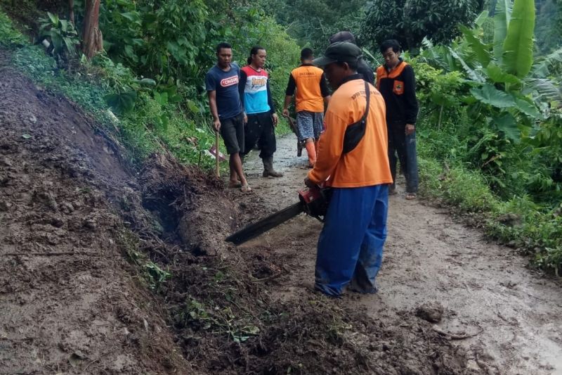 Mendapat laporan tersebut, relawan BPBD bersama masyarakat setempat terjun ke lokasi kejadian untuk melakukan evakuasi material longsor yang menutupi akses jalan.