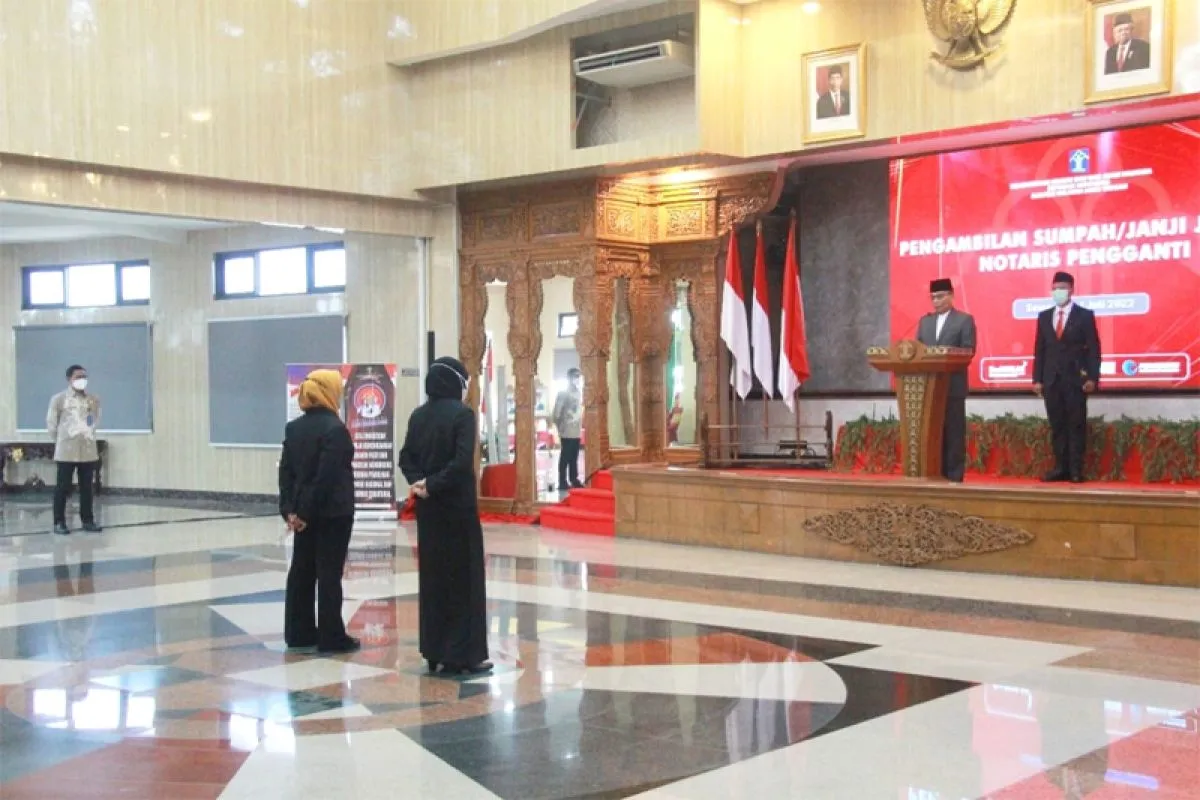 Semarang (ANTARA) - Dua orang notaris pengganti secara resmi dilantik dan diambil sumpahnya oleh Kepala Kantor Wilayah Kementerian Hukum dan HAM Jawa Tengah A Yuspahruddin, Jumat (1/7/2022).
