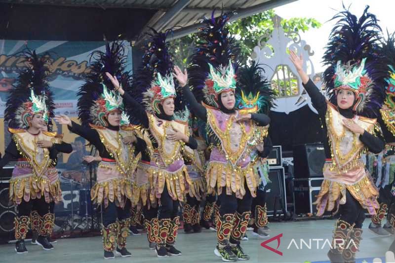 Magelang (ANTARA) - Puluhan guru dan karyawan SMA Negeri 4 Kota Magelang, Jawa Tengah, menari kolosal di hadapan ratusan siswa dan para undangan dalam Hari Ulang Tahun ke-33 SMAN 4 Kota Magelang, Senin.