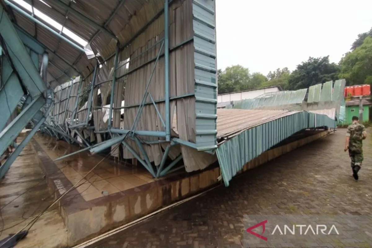 Ambruknya atap bangunan kolam renang itu, kata dia, berawal saat terjadi hujan lebat yang disertai angin besar menerjang di wilayah itu.