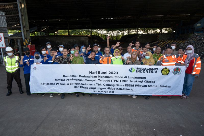 Semarang (ANTARA) - PT Solusi Bangun Indonesia (SBI) Tbk yang merupakan unit usaha dari SIG, menjelang Hari Raya Idul Fitri 1444 H, bekerja sama dengan Dinas Lingkungan Hidup Kab Cilacap dan Cabang Dinas ESDM Wilayah Slamet Selatan, membagikan 300 paket sembako dan 200 nasi kotak kepada para pekerja operasional serta 136 pekerja pemilah sampah di tempat 0engolahan sampah terpadu (TPST) menjadi Refuse-Derived Fuel (RDF) sebagai bahan bakar alternatif di Jeruklegi, Selasa 11 April 2022.