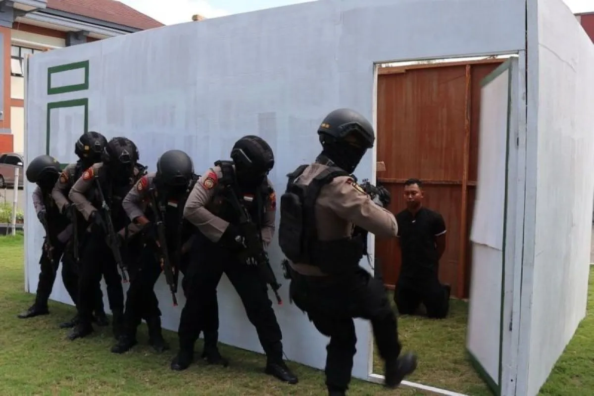 Menurut Kapolres Kudus AKBP Dydit Dwi Susanto, latihan dimulai dari simulasi pengamanan VIP, pengepungan, penggeledahan rumah, hingga pembebasan sandera dalam rangka Operasi Mantap Brata Candi 2023-2024 guna menghadapi kontingensi dan antisipasi gangguan keamanan dan ketertiban masyarakat di wilayah hukum Polres Kudus.