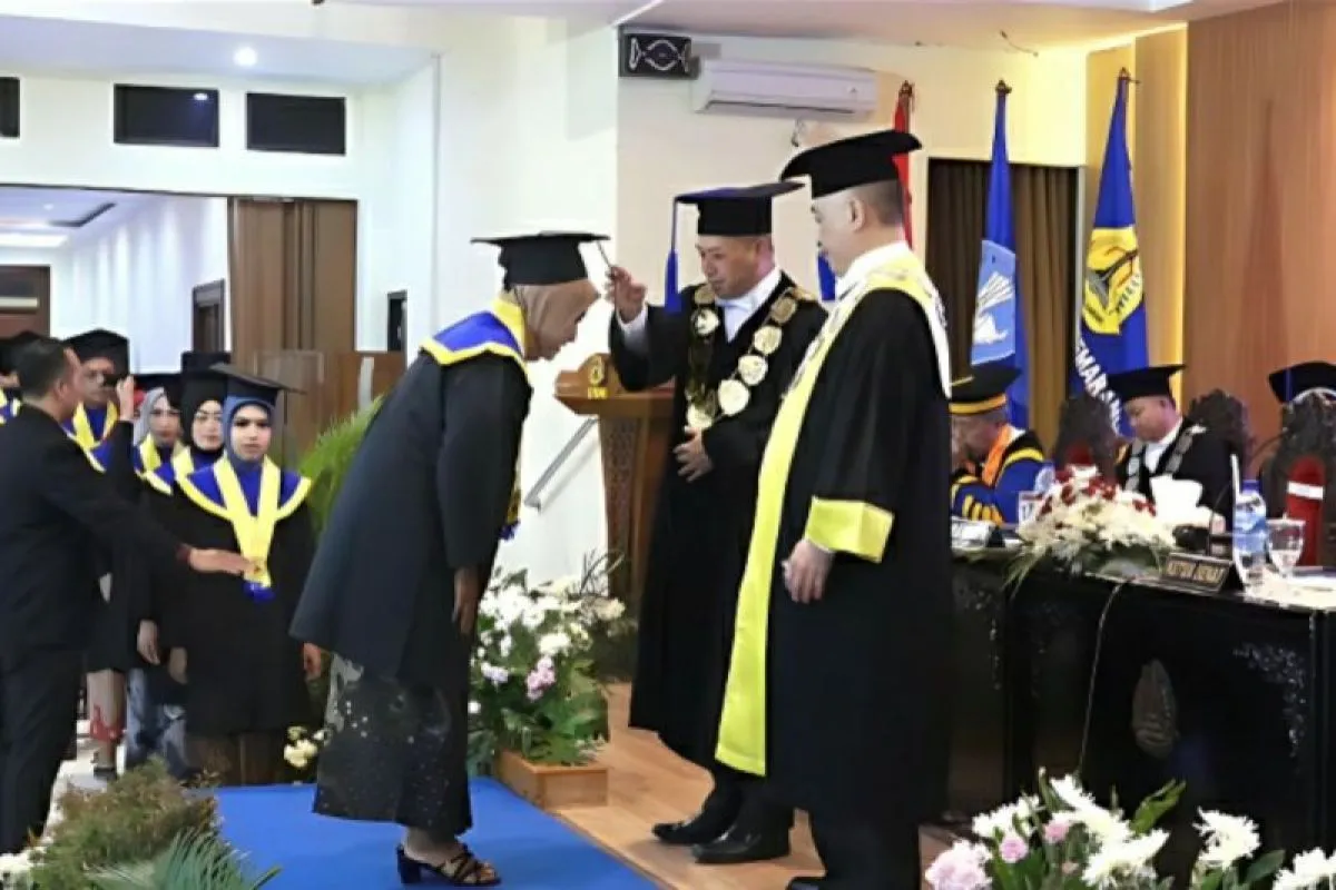 ''Untuk prodi diploma, masa studi 3 tahun sebanyak 20 orang, masa studi lebih dari 3 tahun 2 orang. Adapun prodi Sarjana Reguler, masa studi kurang dari 4 tahun sebanyak 751 orang, masa studi lebih dari 4 sampai dengan 5 tahun sebanyak 142 orang. Sedangkan masa studi lebih dari 5 tahun sebanyak 46 orang,'' ujarnya.