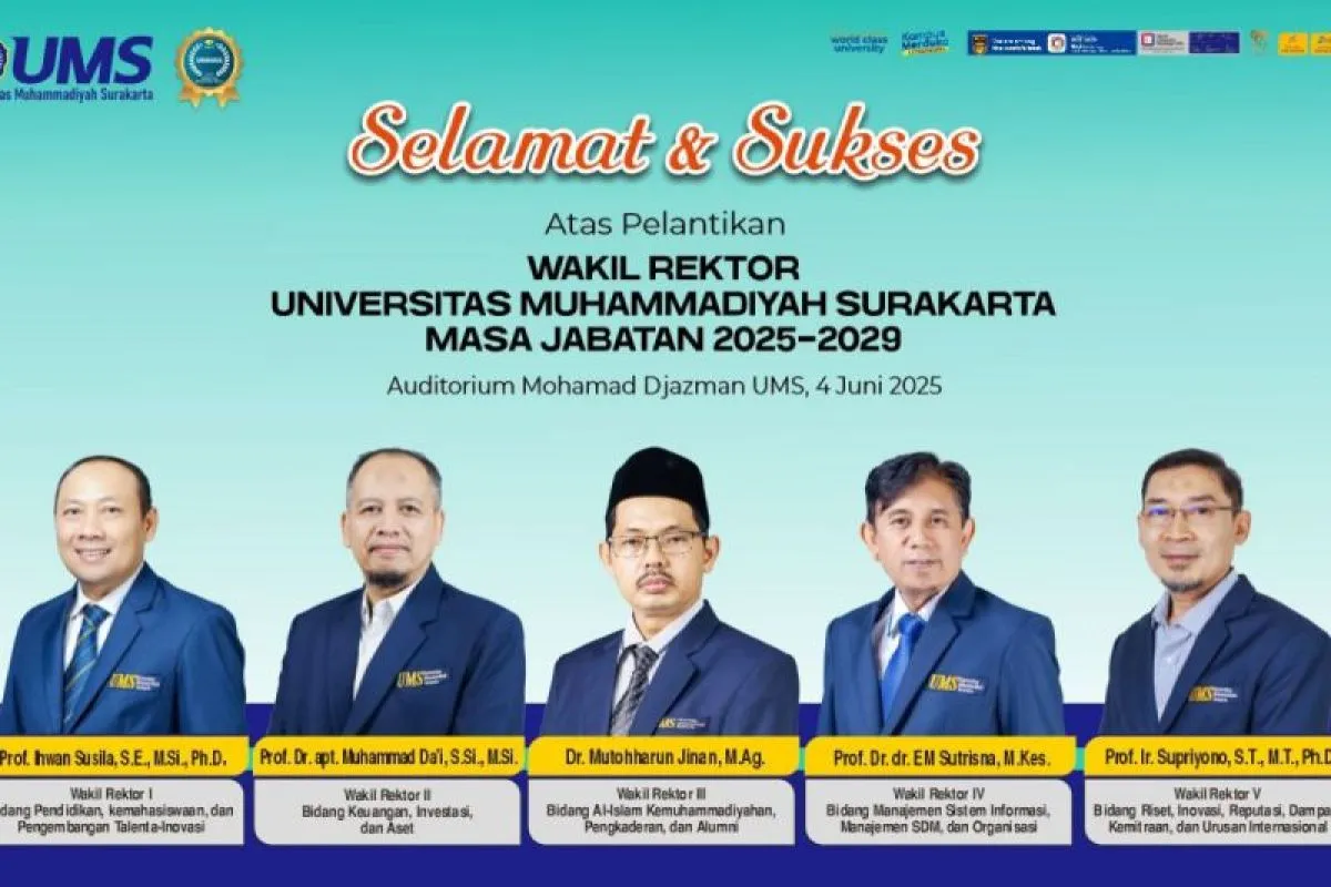 “Alhamdulillah UMS telah melewati proses pemilihan rektor dan sejak April lalu sudah definitif. Mulai 1 Juni 2025, lima wakil rektor telah ditetapkan untuk membantu Rektor Prof Harun Joko Prayitno dalam mewujudkan visi institusi,” katanya.