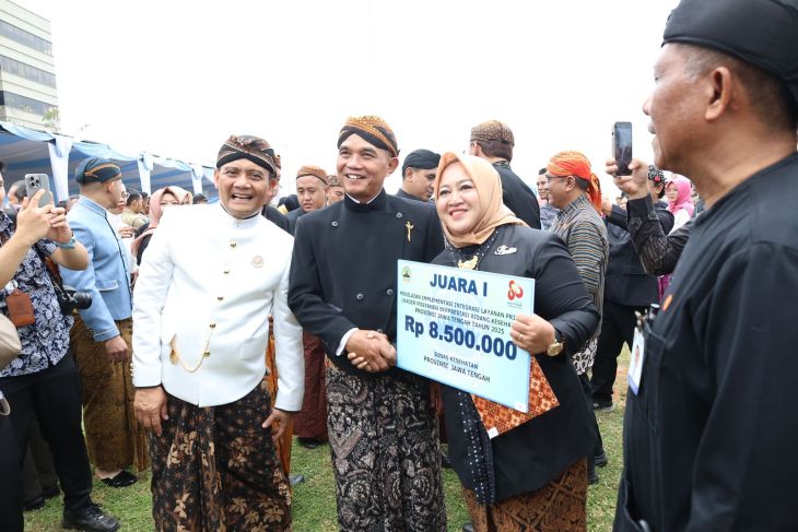 Prosesi upacara untuk memperingati delapan dekade usia Provinsi Jateng itu berlangsung khidmat. Seluruh peserta kompak mengenakan pakaian adat khas Jawa. Ada yang memakai beskap, lurik, batik, dan kebaya untuk perempuan.