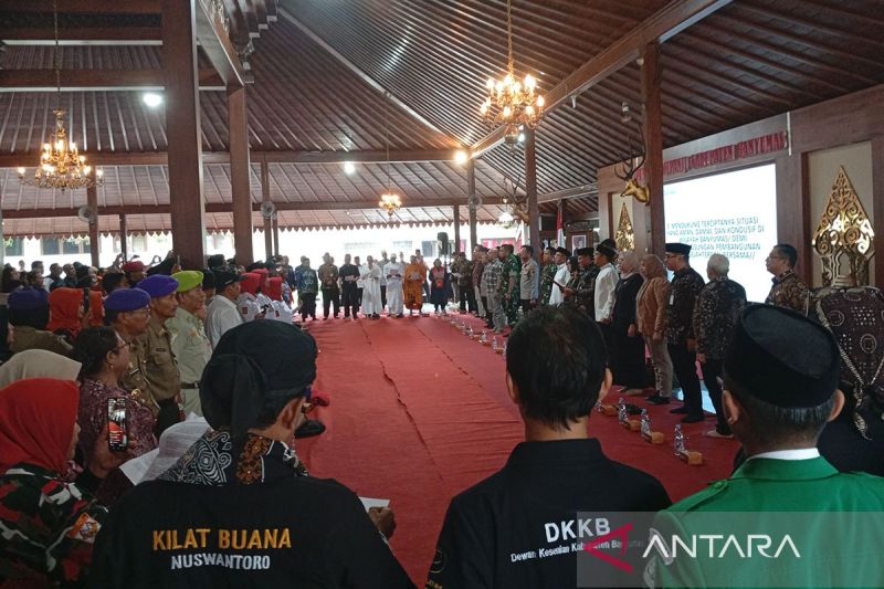 Purwokerto (ANTARA) - Forum Koordinasi Pimpinan Daerah (Forkopimda) Banyumas, Jawa Tengah, bersama perwakilan dari berbagai organisasi kemasyarakatan (ormas) di wilayah itu menggelar Deklarasi Damai dan Doa Bersama Lintas Agama untuk menolak anarkisme demi tercipta suasana kondusif wilayah setempat.