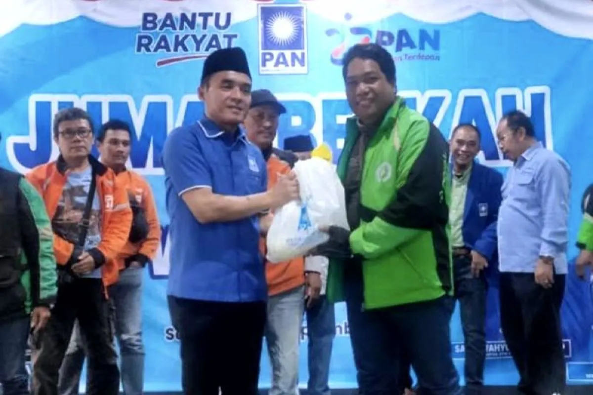 Ratusan driver ojek online (Ojol), anak-anak panti asuhan, dan warga sekitar Kantor DPW PAN Jateng, masing-masing menerima satu paket bantuan.