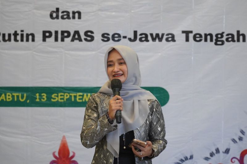Tegal (ANTARA) - Wakil Wali Kota Tegal Tazkiyyatul Muthmainnah yang akrab disapa Mba Iin berkesempatan menjadi narasumber pada acara Pengukuhan Ketua Paguyuban Ibu-Ibu Permasyarakatan (PIPAS) Cabang Periode tahun 2025-2030 dan Pertemuan Rutin PIPAS se-Jawa Tengah yang berlangsung di Antasena Convention Hall, Grand Dian Hotel Guci, Kabupaten Tegal, Sabtu (13/9).