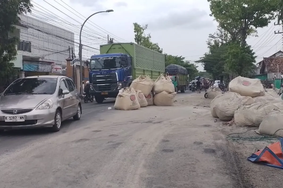 Kendaraan yang dikemudikan Pristia Ristiawan (32), warga Dukuh Kedungpoh, Desa Kedungsatrian, Kecamatan Ngawen, Blora, oleng dan terperosok ke parit hingga muatannya tumpah.