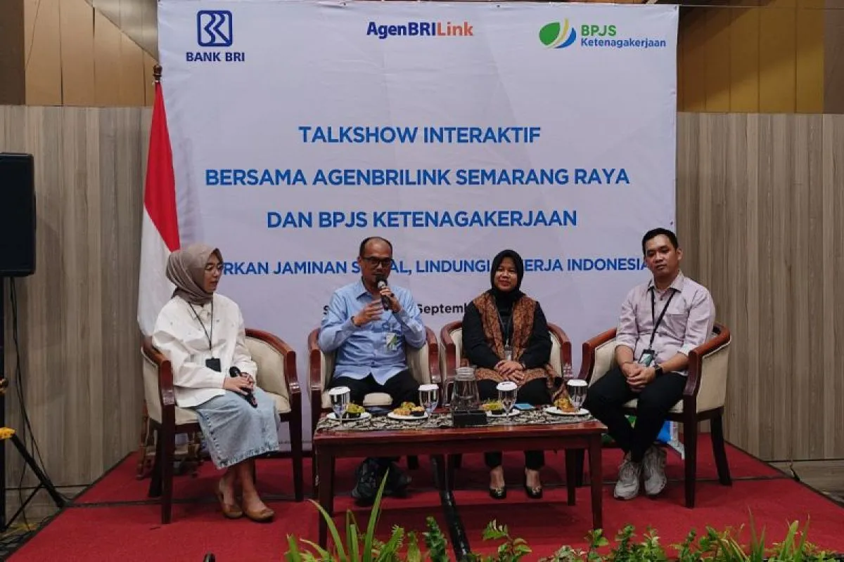 Semarang (ANTARA) - BPJS Ketenagakerjaan Kantor Wilayah Jawa Tengah dan Daerah Istimewa Yogyakarta bersama BRI menggelar Talkshow Interaktif Agen BRILink Semarang Raya di Kota Semarang pada Rabu (17/9).