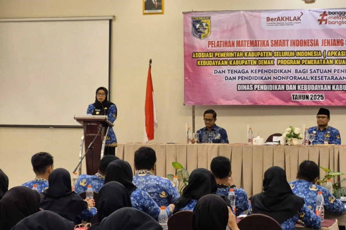 Demak (ANTARA) - Sebanyak 110 guru jenjang Sekolah Dasar (SD) di Kabupaten Demak, Jawa Tengah mendapatkan pelatihan Matematika Smart Indonesia yang digelar sebagai upaya pemerataan kuantitas sekaligus peningkatan kualitas pendidik dan tenaga kependidikan di kabupaten setempat.