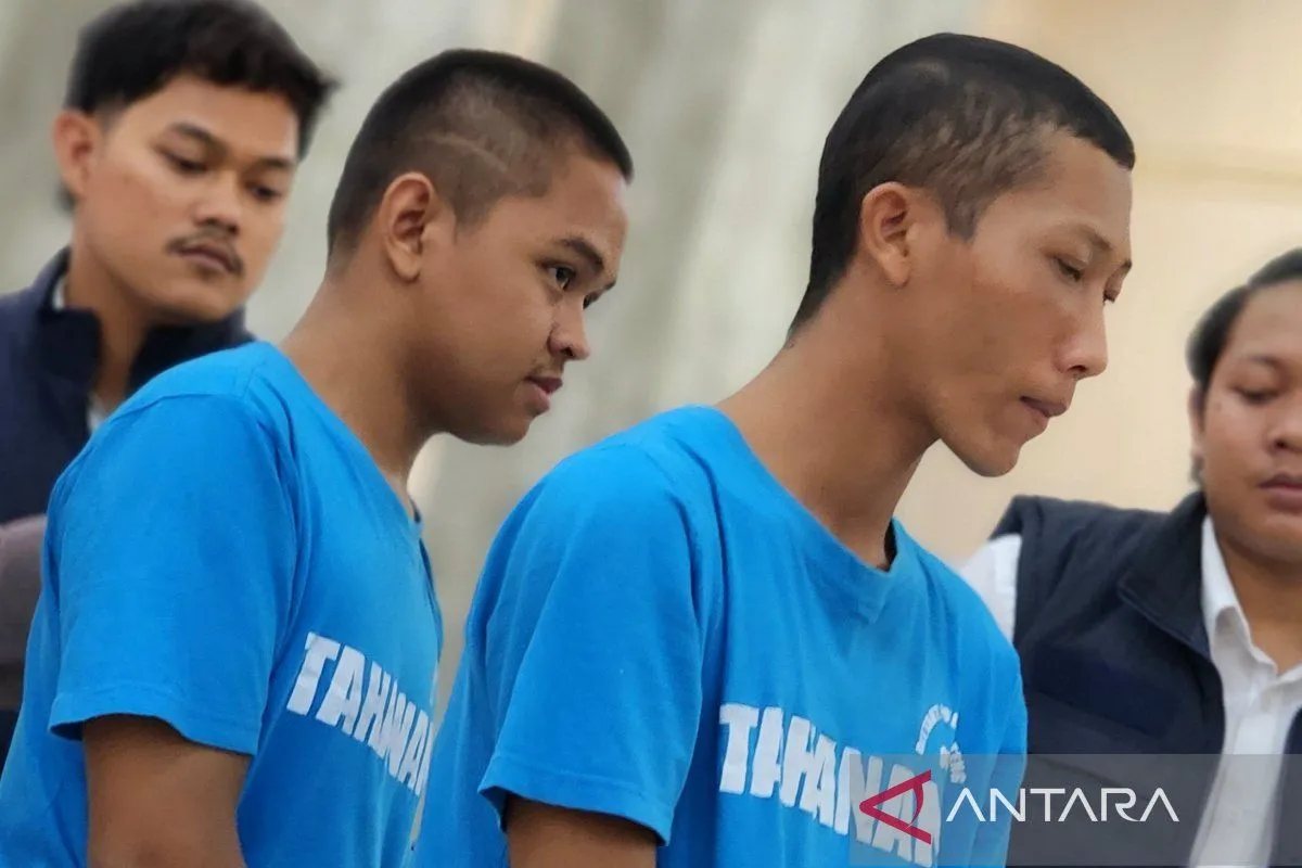 Dua pelaku pelempar bom molotov saat demo 29 Agustus 2025 dihadirkan saat pers rilis di Mapolda Jateng di Semarang, Jumat. (ANTARA/I.C. Senjaya)