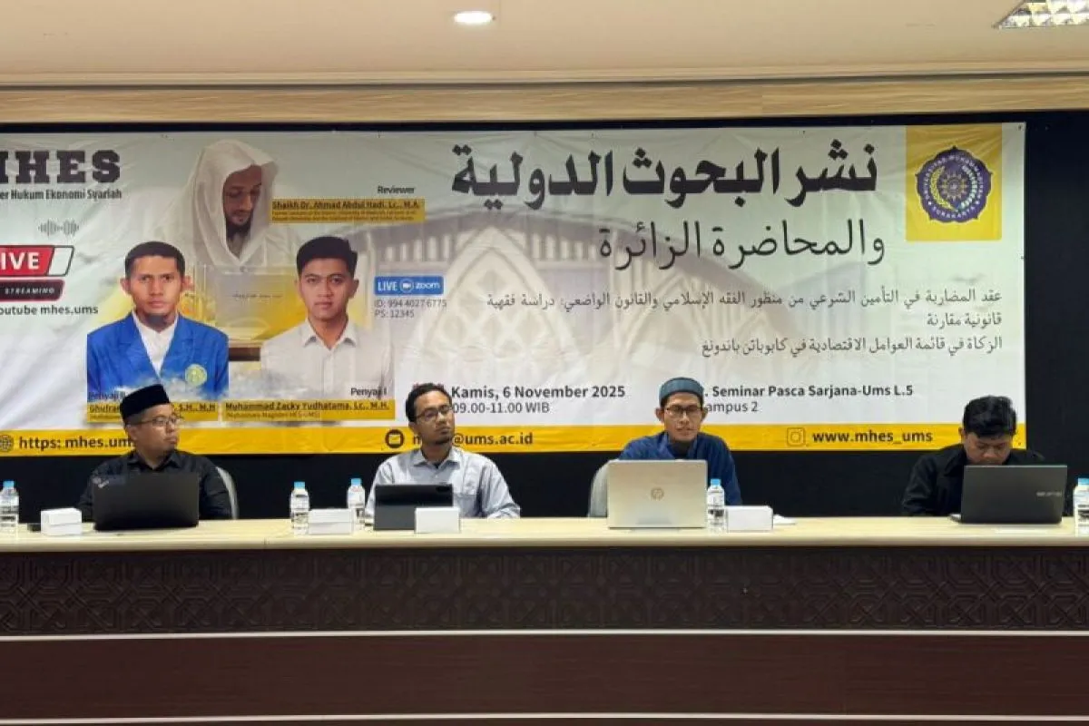 Solo (ANTARA) - Program Studi Magister Hukum Ekonomi Syariah (MHES) Universitas Muhammadiyah Surakarta (UMS) kembali menggelar kegiatan Diseminasi Hasil Riset Penelitian Internasional Mahasiswa dan kuliah tamu yang bertema Akad Mudharabah dalam Asuransi Syariah dari Perspektif Fikih Islam dan Hukum Positif: Kajian Yurisprudensi Legalitas komparatif Zakat termasuk dalam daftar faktor ekonomi di Kabupaten Bandung.