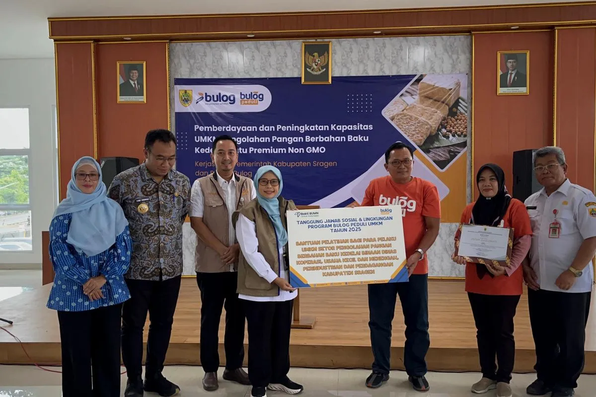 Pemimpin Wilayah Perum Bulog Kanwil Jateng Sri Muniati di sela kegiatan, Rabu mengatakan dalam hal ini Perum Bulog melalui kegiatan Tanggung Jawab Sosial dan Lingkungan (TJSL) Program Bulog Peduli UMKM berkolaborasi dengan Pemerintah Kabupaten Sragen melalui Dinas Koperasi Usaha Kecil dan Menengah, Perindustrian dan Perdagangan melaksanakan pelatihan Pemberdayaan dan Peningkatan Kapasitas UMKM Pengolahan Pangan Berbahan Baku Kedelai Mutu Premium Non-GMO.