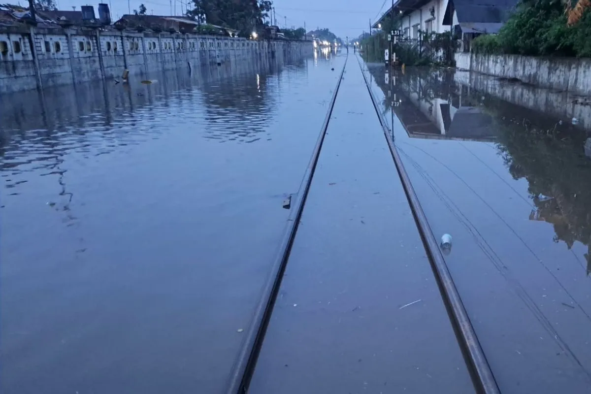 Ketinggian air yang menggenang mencapai 10 cm di atas kepala rel.