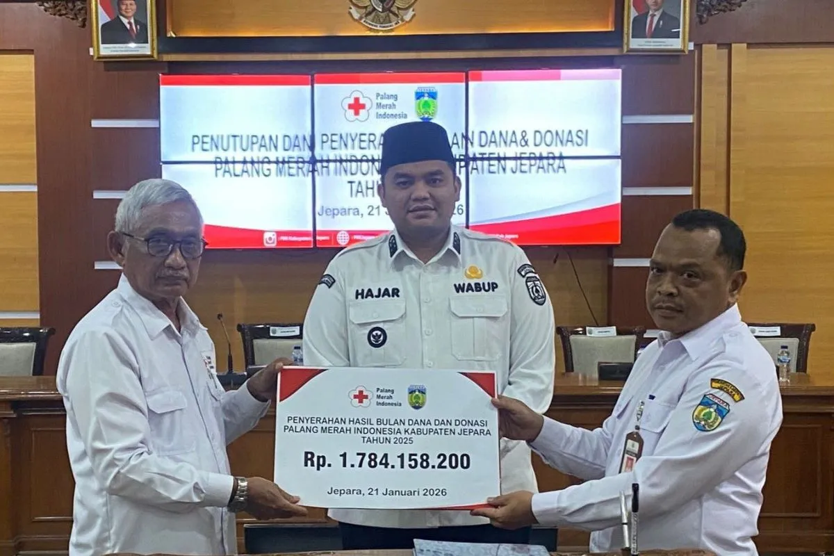 "Realisasi bulan dana PMI 2025 ini memang menurun dibandingkan tahun sebelumnya. Namun, hal ini harus dipandang sebagai tantangan bersama untuk meningkatkan inovasi ke depan," kata Wakil Bupati Jepara Muhammad Ibnu Hajar saat menghadiri penutupan sekaligus penyerahan hasil Bulan Dana dan Donasi PMI Tahun 2025 di ruang rapat RMP Sosrokartono Jepara, Rabu.